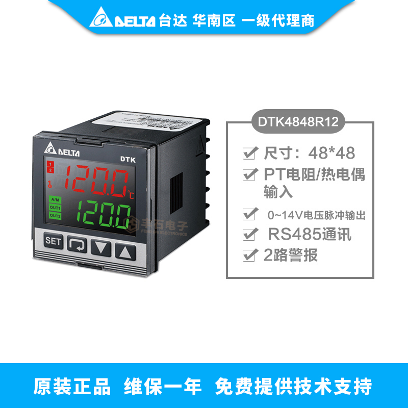 臺(tái)達(dá)智能溫度控制器 DTK4848V12 參數(shù):高亮 LCD顯示,48*96,Pt電阻/熱電偶輸入, 4~20mA輸出, 1路警報(bào)