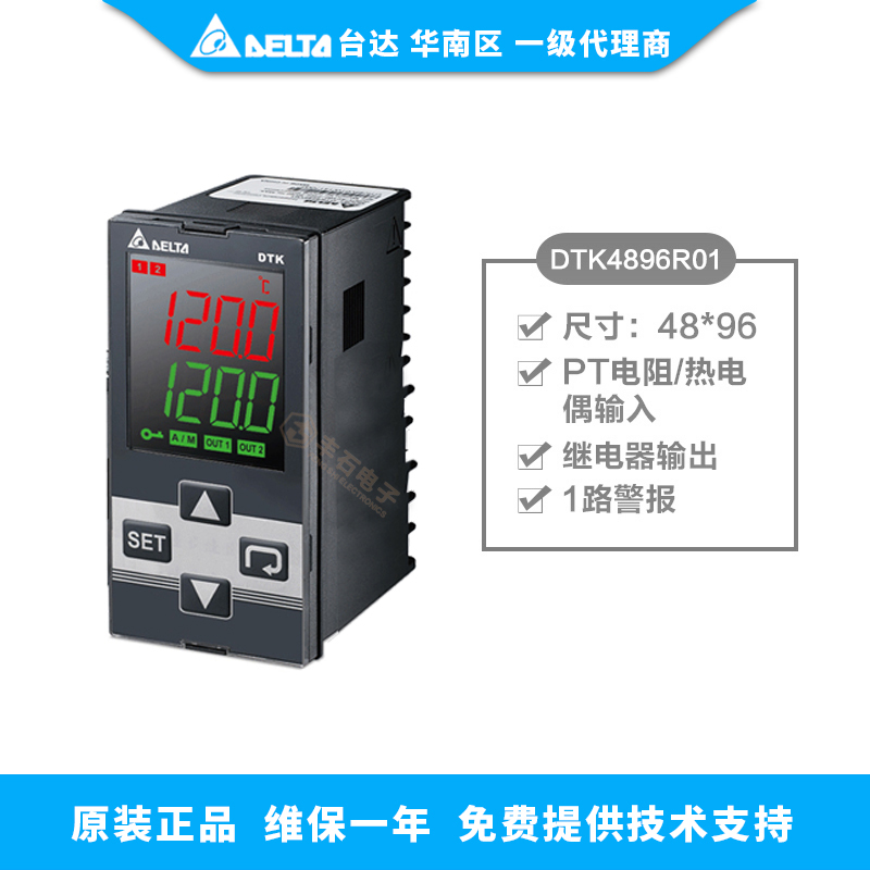 臺(tái)達(dá)智能溫度控制器 DTK4896R01 參數(shù):高亮 LCD顯示,48*96,Pt電阻/熱電偶輸入, 繼電器輸出,1路警報(bào)